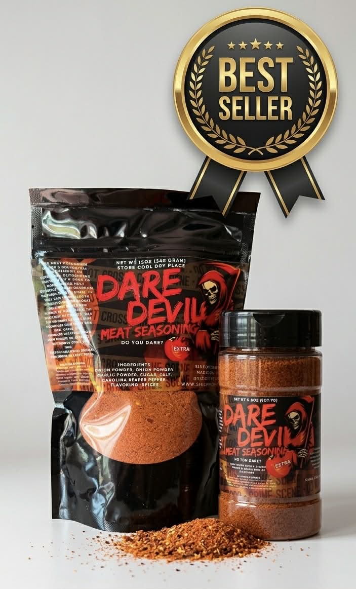 Dare Devil is bold, savory, and deeply smoky with a subtle sweetness that pulls you in before the heat begins its slow climb. The spice builds gradually, warming your palate until it settles into a lingering burn that keeps every bite exciting. It will keep you going back for more!